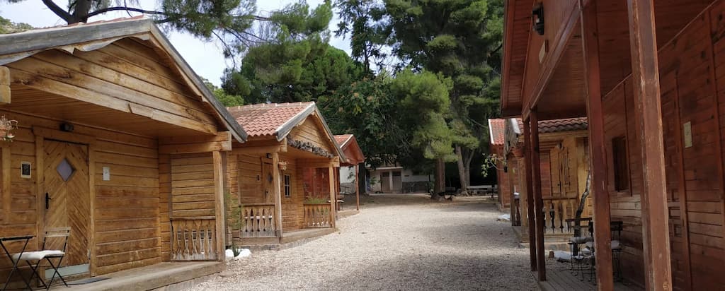 57 plazas en total distribuidas en 5 cabañas de madera, más la zona de acampada.